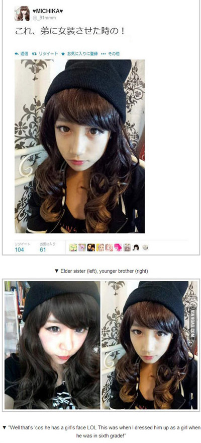 รู้สึกว่าช่วงนี้ที่ญี่ปุ่น จะเห็นพี่สาวน้องสาว ถ่ายรูป ลงน่ารักๆ กันให้ทั่วไปหมดเลย แต่เอ๊ะ พอมองใกล้ๆๆ ทำไมน้องสาว หน้าแปลกๆๆ นะ พอมองใกล้ๆอีกที อ้าว เด็กผู้ชายนี่หน่าาาาา พอถามดู ก็พบว่า ตอนนี้ที่ญี่ปุ่น เทรนด์นี้กำลังฮิตอยู่ในประเทศญี่ปุ่นนะฮ๊าฟ สำหรับการที่พี่สาวมาจับน้องชายของตัวเองแต่งเป็นสาวดุ้น แหม่... น้องชายของสาวบางคนต้องบอกเลยว่าเหมือนสาวสุด ๆ จะเป็นยังไง ไปดูกันเลย