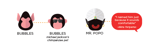 พอมาดูๆ แล้ว อาจารย์โทริยาม่าเป็นคนที่ละเอียดสร้างสรรค์จริงๆนะคะ ขนาดชื่อตัวละครอาจารย์ยังคิดละเอียดสมเป็นนักเขียนชื่อดังเเห่งยุคจริงๆค่ะ แต่เอ… ทำไมดูเหมือนว่าชื่อส่วนใหญ่จะหนักไปทางของกินซะเยอะเลยนะคะ ^^