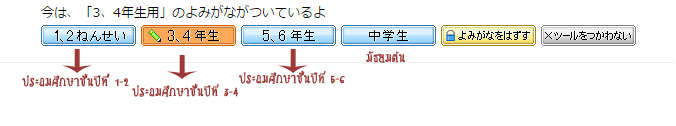 จะเห็นได้ว่ามีคำอ่านให้เฉพาะคันจิบางตัวเท่านั้น สมมติว่าถ้าเลือกระดับประถม 1-2 จะโชว์คำอ่านของคันจิทุกตัวเลยครับ