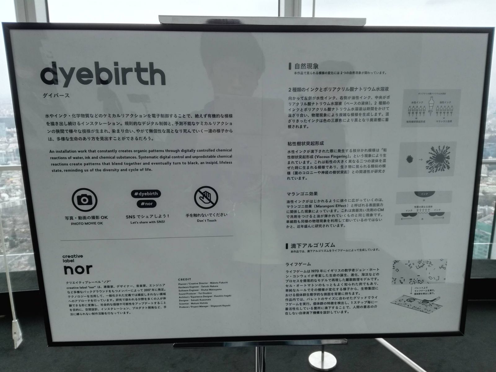 งานแสดงผลงานซึ่งสร้างลายธรรมชาติที่เปลี่ยนแปลงตลอดเวลา โดยการควคุมปฏิกิริยาทางเคมีของน้ำ หมึกและสารเคมีแบบดิจิตอล ด้วยระบบควบคุมดิจิตอลและปฏิกิริยาทางเคมีที่ไม่สามารถคาดเดาสร้างลายซึ่งหลอมรวมกันและในที่สุดได้กลายเป็นสีดำ ดูไม่มีชีวิตชีวาและไร้แก่นสาร ซึ่งเตือนใจพวกเราถึงความไม่แน่นอนของชีวิต